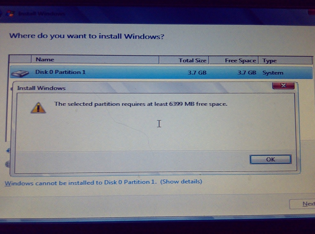 Just out of curiosity, I wanted to know the minimum spec for Windows 8, so I tried to install it on the first-gen Linux Asus EEE PC, you know, the one that started the Netbook craze. The thing has a 4Gb first generation SSD drive. Its just gathering dust in our personal Gadget Museum. Well, now I know; to Install Windows 8, you need at least 6.4Gb of disk space!