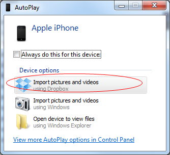 Here’s how it works. First, download the beta version of Dropbox (link is provided below) and install it to your PC, Mac, or Linux. Then, plug in an external drive, like a flash drive, phone, or a camera. When the autoplay appears, click the item that says “Import Pictures and Videos” with the Dropbox logo on its side. Wait for it to import and you are done! If the autoplay doesn’t appear, you can go to my computer, right click the external device, and then click autoplay.