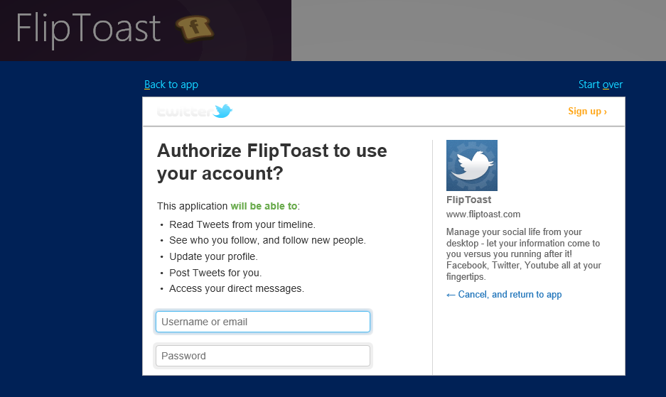 Linking and login to Twitter was a breeze. Clicking the Plus sign at the top-right corner