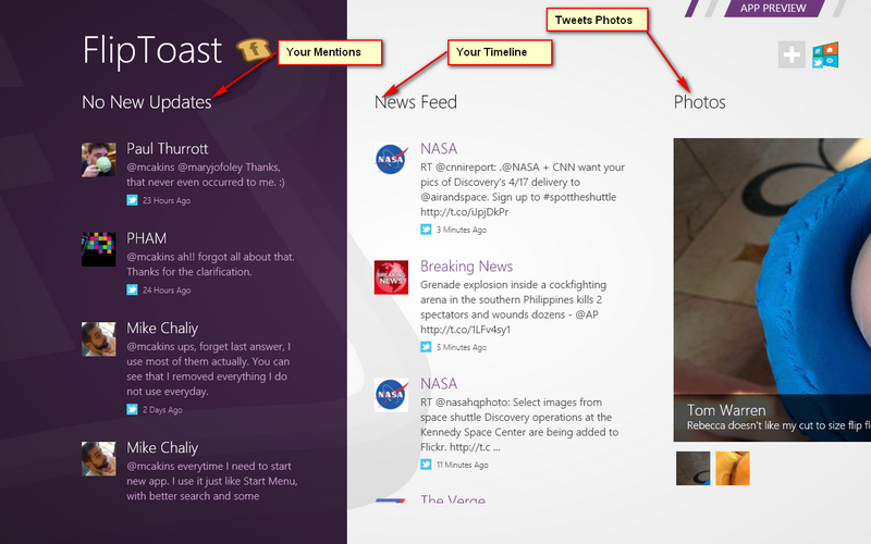 It is the first social Metro App for Twitter and Facebook in the store in this category. I am sure we will see a deluge of this type of Applications later in this category, but for now the category is the most missed category in Windows 8 Store. So anything will do as for now.