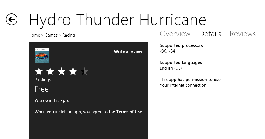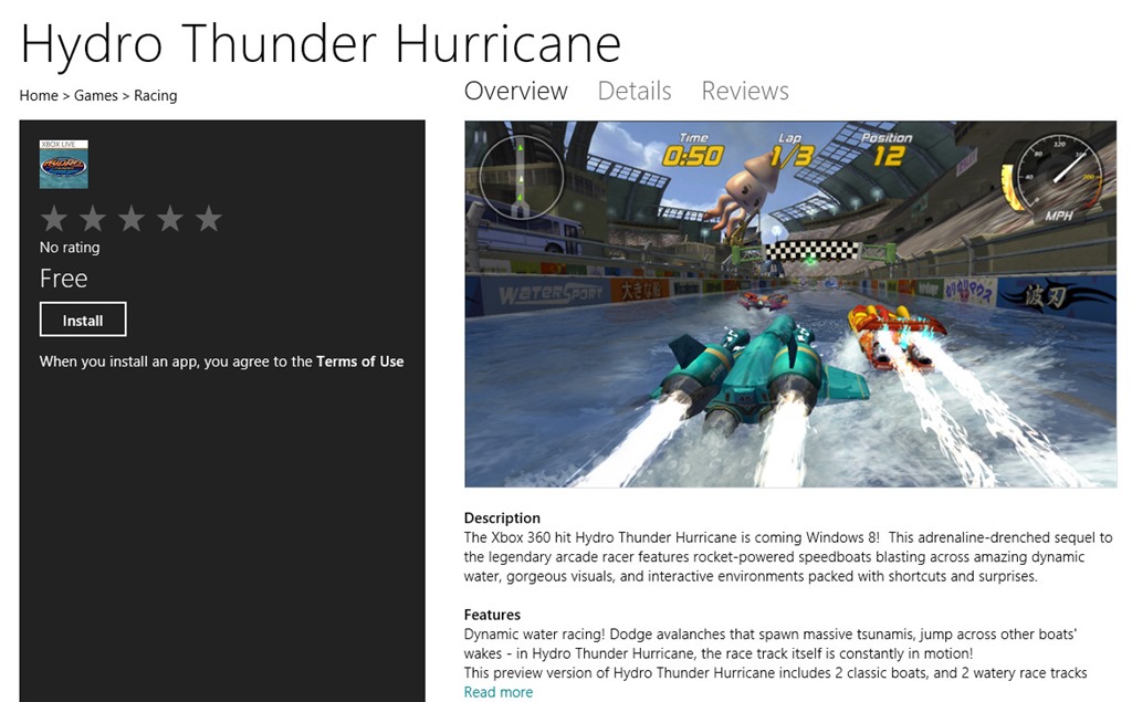 ATTENTION: This game is not yet visible in the store. You will need to open the Store, open the Charm and do a search for Hydro Thunder…