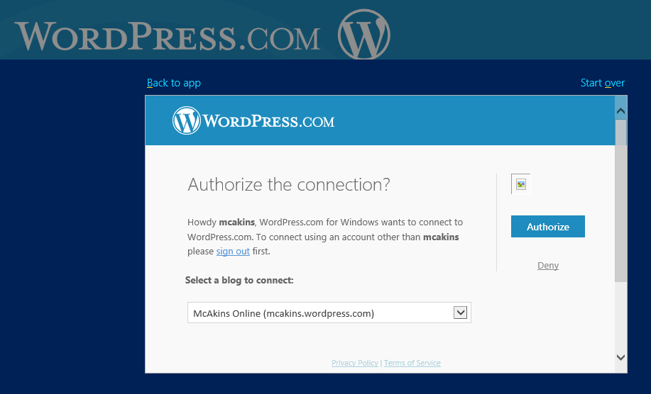 Pressing “New Post” opens you login screen from where you can authorize the application for your blog. If you have multiple blog accounts, you are presented with opportunity to select active account.