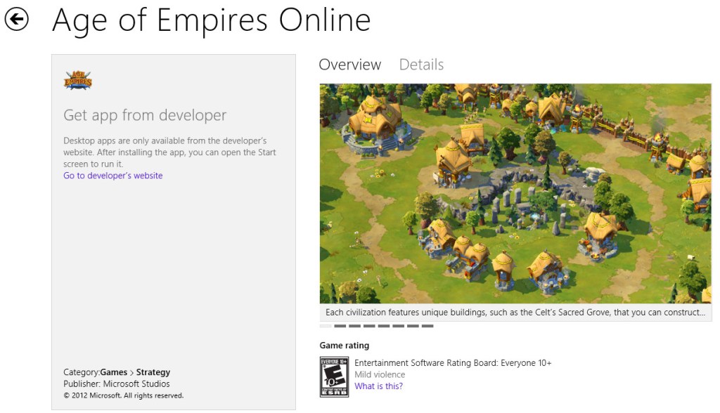 The fourth Desktop App has been added to the store. This time it is the ubiquitous game Age Of Empires Online from Microsoft’s own Studios. Of course the App does not need any introduction to fans of the game, but for those of you who wants something new, the promise of the Windows App Store is now being realized, that is, easy discoverability of Desktop Apps. Now you don’t have to go start looking all over the internetz, but you simply go now to the app source to install. Go try it if you are interested.