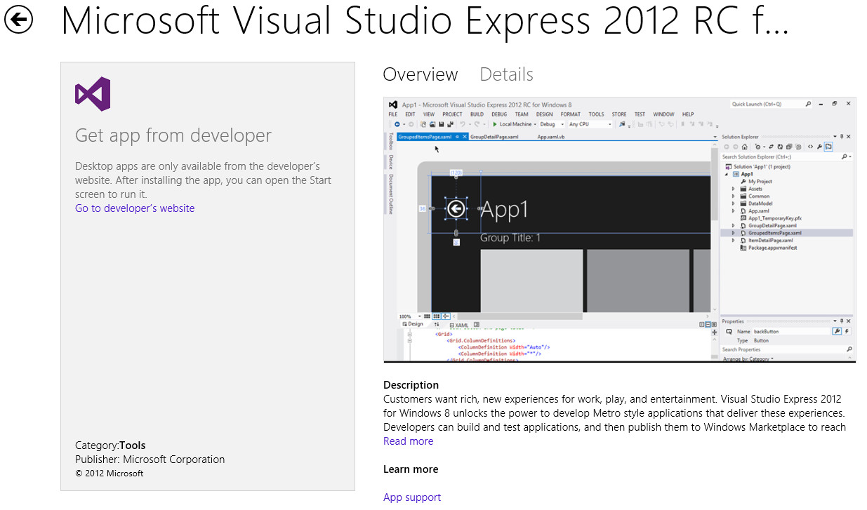 Well, we knew it was a question of time, now it has happened. Microsoft is promoting Visual Studio Express 2012 as general hobbyists platform to develop Metro and Desktop Apps, and where is the best place to do that? Of course in its own Windows 8 Store. The store guarantees easy visibility and accessibility, therefore Microsoft is wasting no time showcasing its developer platform.