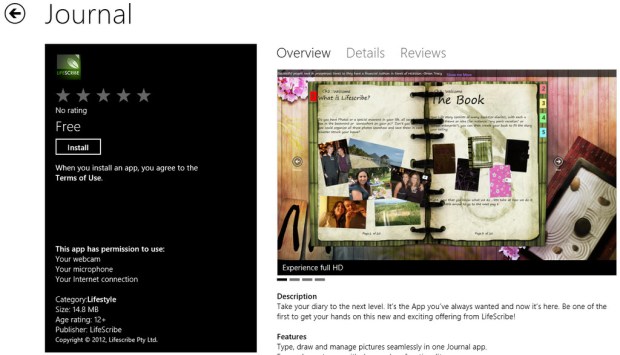 Have you used Journal from LifeScribe before? Maybe on other platforms? Are you also planning to use it on Windows 8. Install the app and let us know how it compares to Evernote and OneNote MX or OneNote Desktop version. Funny enough, you won’t find this app in the Productivity section but in the Lifestyle section. Maybe because its more of a photo-album kind of app? The app also gives you the ability to record Video and audio with your notes. There is however no mention of Pen or Ink support. The following is the description from the store: