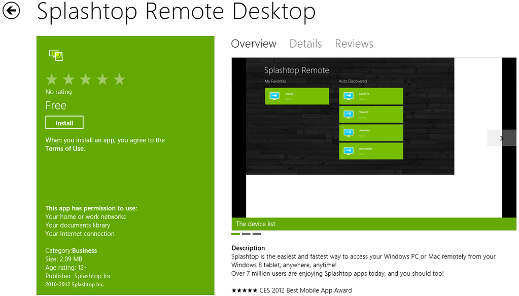 Splashtop is the easiest and fastest way to access your Windows PC or Mac remotely from your Windows 8 tablet, anywhere, anytime!