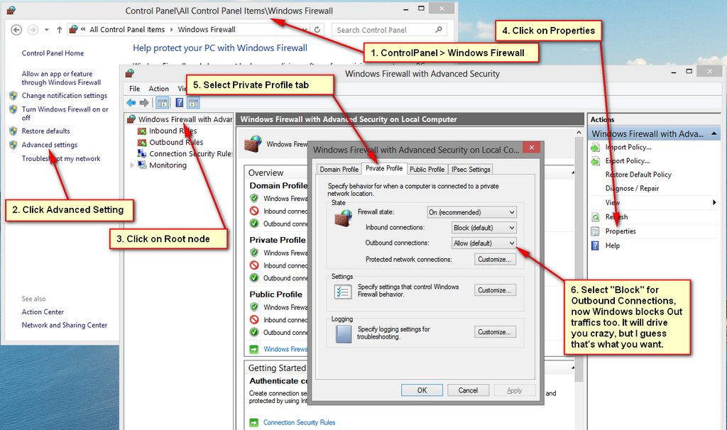 How To Activate Outbound Firewall Protection in Windows 8. Click on Picture so see the whole instruction.