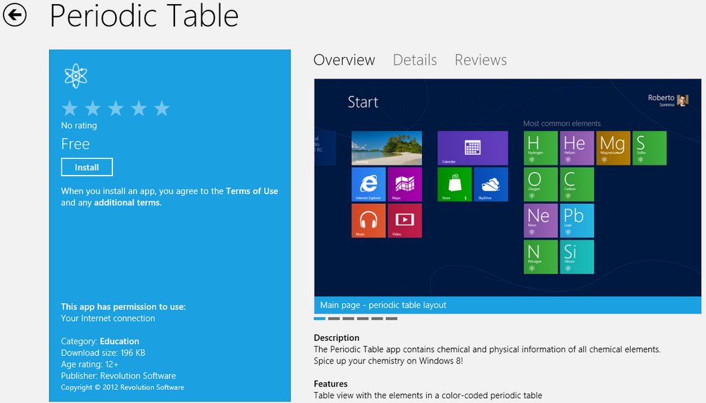Already tweeted this, but I feel I should give a shoutout to this guy’s effort. I am all for anything scientific. I was glad when the TouchMol hit the store way back in the early days of Release Preview. You can count me in Anything to get our kids excited about Science again. TouchMol gives you everything about Molecular structures, disappointed it was rated only by two people, but for those two, it was a solid 5. It was a solid App. I hope the same with this Periodic Table app. As the name suggests, it is an app to get back to the basics with Chemistry again. For this free app, you get a color-coded Periodic Table of our known Atomic Elements. The building block of the physical universe as we know it. You can also pin your favorite elements to the Start Screen for easy access. Revolution Software gave the following description from the Store: