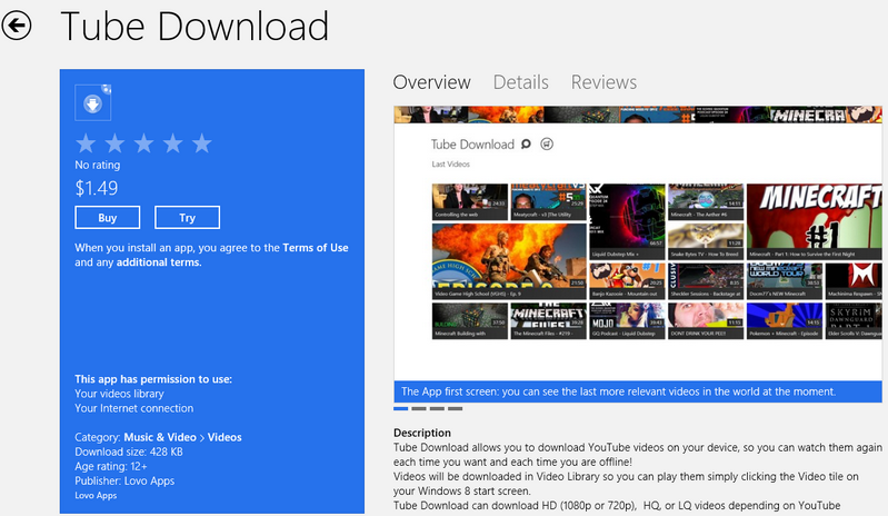 Tube Download can download HD (1080p or 720p), HQ, or LQ videos depending on YouTube availability, but obviously you can also search and watch a streaming video without downloading it!Features: