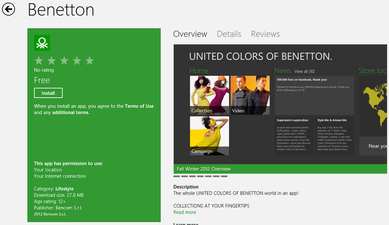 Guess who has joined the Metro party? Yes, its Benetton bringing their colors to the Metro. If you are into fashion this is your thing. Benetton needs no introduction of course, they’ve made a name for themselves. Seeing them in the Store is another attestation that big companies are noticing the potential of Windows 8. Boy, are Microsoft detractors going to eat their own shoes in October.
