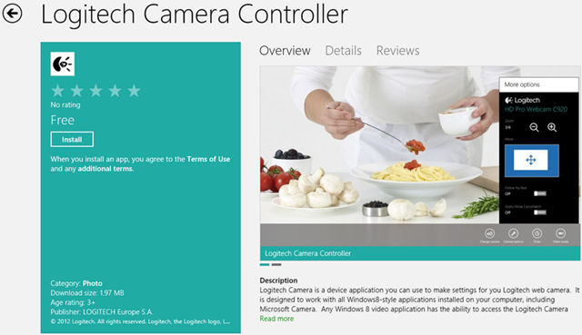 Logitech has joined Microsoft Hardware in the Store by releasing an app for their top of the line Cameras. With this app you can perform some basic adjustments and Register and reach Forums for issues.