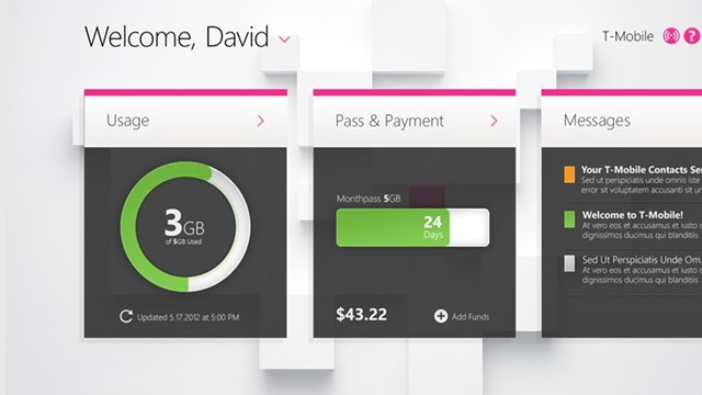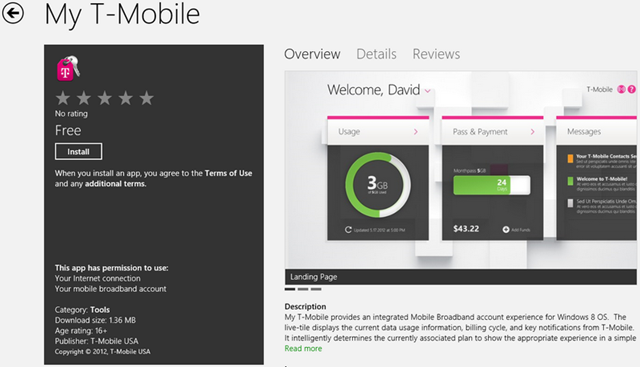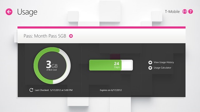 Here we go, T-Mobile got their acts together and released My T-Mobile app in the Store. With the Developer Preview then, they released an app that no-one used, now they’ve come back with gun blazing and released an actually useful app for Windows 8. With this App, you can now keep an eye on your T-Mo’s universe; Tile and App inclusive. Got LTE? You want to get this app before LTE sucks out all your bits and you start paying through your nose. Here how T-Mobile describes the App in the Store: