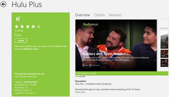 Hulu LLC has decided to join Netflix in Windows Store by releasing their Official Windows 8 App: Hulu Plus. Of course Hulu needs no introduction, but if you are from Mars and you know not what Hulu is about, its all about Video Streaming. Hulu brings you your favorite TV Shows and Series, but then the Internet. Following is Hulu LLC’s description of the App from the Store: