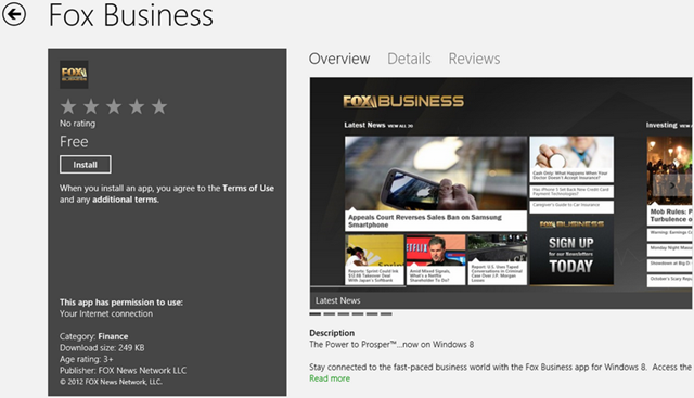 Stay connected to the fast-paced business world with the Fox Business app for Windows 8. Access the latest financial news and videos throughout the trading day.