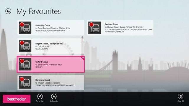 Favourite the bus stops you use regularly and add as Live Tiles to Start Menu.