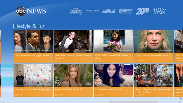 See The Whole Picture with the new ABC News app for Windows 8 featuring breaking news stories, video, photos and more. Get a dynamic, around-the-clock look at content from your favorite ABC News programs including Good Morning America, World News, Nightline, 20/20 and This Week.Features