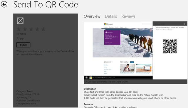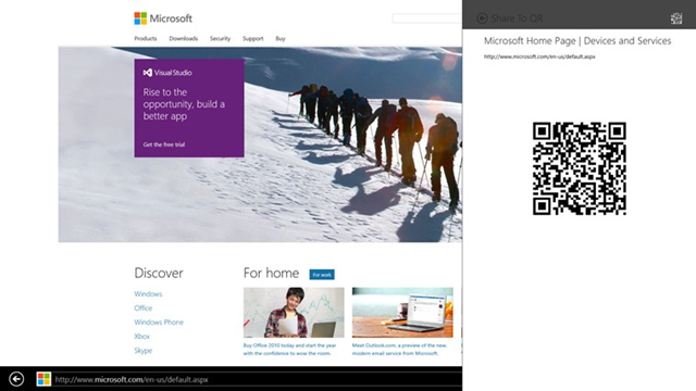 Here is another tool to love in the Windows Store. Just send you text or URLs to QR Code, then scan it from another device. Convenient way to share data with other mobile devices.