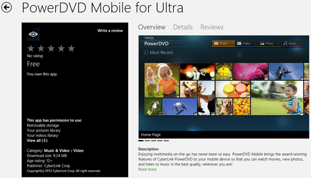 Cyberlink Corp is really rocking the Windows Store. They’ve just released another mobile App: PowerDVD Mobile for Ultra. Unfortunately as the suggests, this is only for powerful devices, therefore the “Ultra” appendage. So if you have an ARM devices you’re out of lick, sorry Surface users. The demand for high power devices comes from the Editing that the App also performs. Here is the full description from the Store: