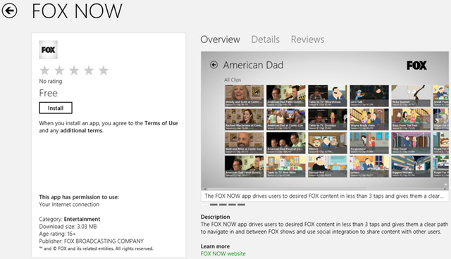 Well, here I was thinking I have covered all Fox Apps in the Store, as you can see another one has just drop. Fox Now App has just been published in the Store. Again Fox is succinct on information with the app. They only supply the following: