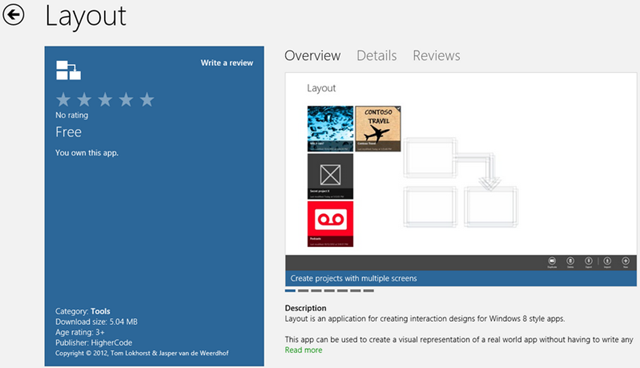 Layout is an application for creating interaction designs for Windows 8 style apps.