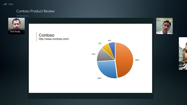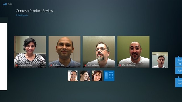 Join Lync Meetings with a single touch and easily switch between IM, group video, and content views.