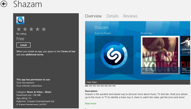 Shazam for Windows 8 is here! Unfortunately, those of you with ARM devices will have to miss it for now as it is only for Intel platform on this first iteration.