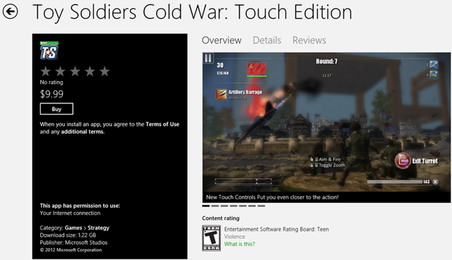 The Cold War ignites when ’80s era action toys come alive and wage war! Toy Soldiers: Cold War Touch Edition delivers hours of intense combat combined with non-stop action strategy gameplay, now redesigned for tablets and touch-enabled PCs running Windows 8!