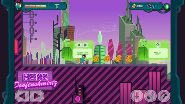 Guide Perry aka “Agent P” through this action-packed, side-scrolling adventure! Try to locate the other missing agents as you battle robotic guards and double jump your way through Doof’s complex.Features