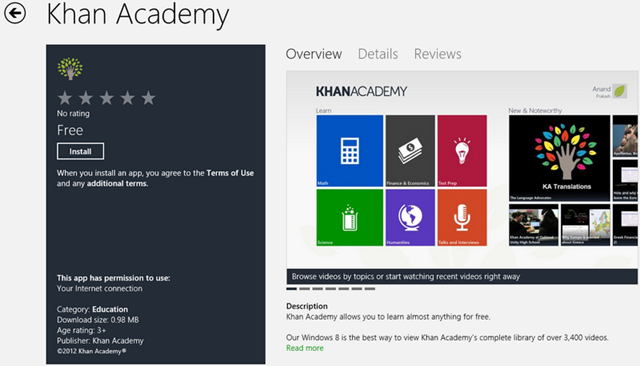 Our Windows 8 is the best way to view Khan Academy’s complete library of over 3,400 videos.