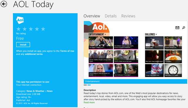 AOL decides to join other News Sources in Windows 8 Store by releasing this official App for AOL. They already have the Engadget App in the Store, but now they have an app dedicated for the whole of AOL Enterprise. Here is how they described the App in the Store: