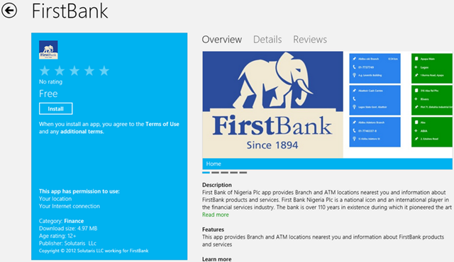 Wow, I wasn’t expecting this so soon. The first app from West Africa is in the Store. Way to go people, proud of ya’all. FirstBank is as the name suggests, the first bank in Nigeria, if not in the black Africa. It is a reputed bank in the Country, and they are providing their customers information via this app. This is not a Transaction app for example. Here is the description from the Store: