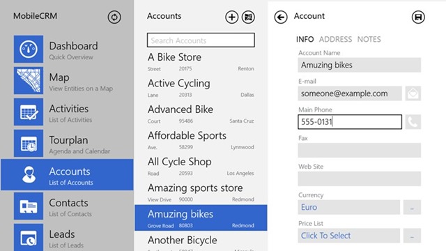 Resco Mobile CRM app is a client for Microsoft Dynamics CRM that allows accessing your data anywhere and anytime. The app works in online or offline mode and it does not require any middleware or additional server – just install it on your device, connect directly to your Dynamics CRM and use it with your real data. You can access/create/delete/modify all data.