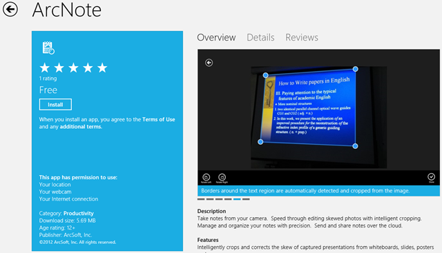 Here is a nice tool from ArcSoft, long known for their Media Software on the Windows Platform. ArcSoft is currently strongly represented in the Store with about 5 Apps and one them is this free tool that allows you to crop and correct skewed media assets you captured via you Camera for example. If you are a nerd like me hopelessly lost in journaling your day via the camera of your Smartphone, you know what can happen when you want to quickly capture something for your personal administration. They always turn out skewed no matter how you try to balance your camera. Now we have ArcSoft in the Store to the rescue. Here’s how they described the app in the Store: