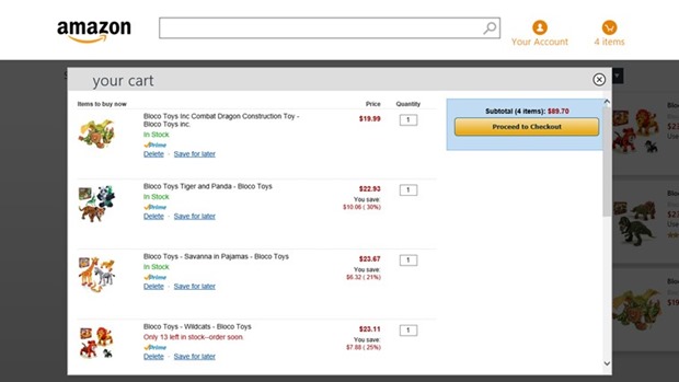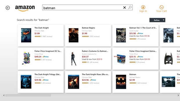 Search for products using the Amazon app, and easily add them to your shopping cart to purchase. (Note: the app uses the Amazon search engine, which is a non-Microsoft commerce engine.) All purchases made on Amazon are routed through our secure servers just as they are on the web.Features