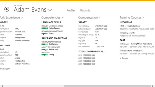 With the SAP Manager Insight mobile app for Windows tablets, you can access mobile reports and employee profiles anywhere and anytime. This app accesses the SAP ERP application and supports HR business partners, HR specialists, and managers in preparing and holding meetings with line managers and employees and in making quick and meaningful decisions.