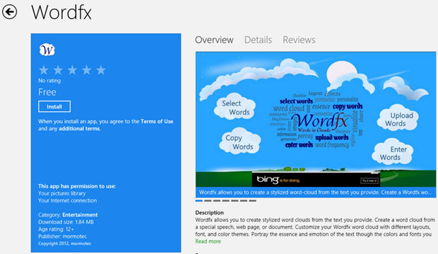 Here is now such an app you’ll not be using daily, but you’ll appreciate it when you need that very one effect you can only get from it. WordFx creates a Word Art from your supplied text as a Word cloud. It’s a good analytical tool if you need to know your most used words, you need to see trends on a subject matter etc. You’ll be surprised how much you are biased to certain words. Just give this app a pile of text, it will create a visual cloud accentuating the most used words in bold and color. This is a nice tool to have in your toolbag. Read more about the app as follows: