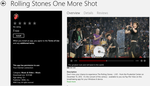 Wow! WWE brings the first Event dedicated App to the Store. I wasn’t expecting this. We are all conditioned to view our Apps as Permanent Augmentation of our lives. They will always be there when we need them. Not something you use and throw away like penlight batteries after they depleted. Here is WWE with the dedicated Rolling Stones App to cover the Concert Event of the 15th of December for the Rolling Stones. I mean it literarily covers everything you want to know about the Concert. You can even watch the concert from the App, but you’ll have to pay for that. Since I don’t use iOS nor Android, I can’t vouch that they have something like this, but I welcome it for Windows 8 users. It features Countdown timer and Twitter social connect with other Rolling Stones fans all around the world. So you are not living in the US, you can visit the Prudential Center on the 15th, you don’t have the excuse anymore. This is your chance to be part of history: The Rollings Stones – One More Shot!
