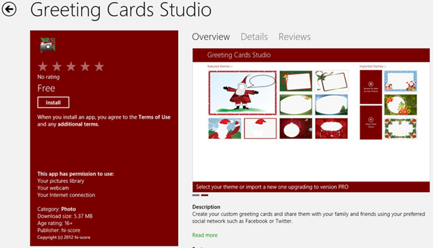 In this Yuletide period in a digital age, what is more appropriate than to send Digital Christmas Cards. Well some Dev’s are thinking of you, they give all for free, a Greetings Card Designer Studio. You can now let your imagination run wild and send that unique Christmas Card that can only come from you and not some sweat factory where people are paid pennies a day for their efforts . The App comes with Templates allowing you to mix and match to your heart’s content. Here is now the Dev described the app in the Store: