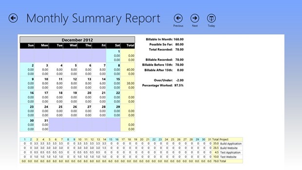 TimeCrunch is the ideal way to track your time if you bill by the hour and work on multiple projects for multiple customers. It gives you a simple way to enter in your time at the end of the day, then lots of ways to report on what you worked. You can get reports by project, by day, summaries by week or month, and more. You can see at a glance how many hours you’ve worked this week or this month. If you are looking for a simple way to track your time, this is it!Features