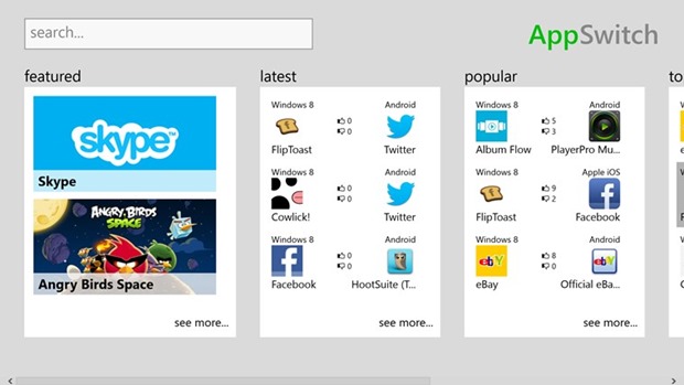 A long while back I ran treatise on an App that debuted in the Store that allows Switchers from other Mobile OSes to feel at home on Windows 8. Since then AppSwitch has grown to become the first app a Switcher should download on moving to Windows 8. There has been improvements to the app down the line, and recently the Publisher has released an extensive update to the app in terms of UI improvements and database updates. You can now easily find any apps you were hooked on in iOS and Android on Windows 8 and Windows Phone 8. There are columns presenting the topmost apps, the “Top 50 Apps” like Microsoft like to call them. View top rated, view Reviews, Search by Category etc. I believe Microsoft should have done something like this actually with the release of their Mobile OSes, but we are glad an independent Vendor has taken up this challenge. Here are the updated features and screenshots from the Store:
