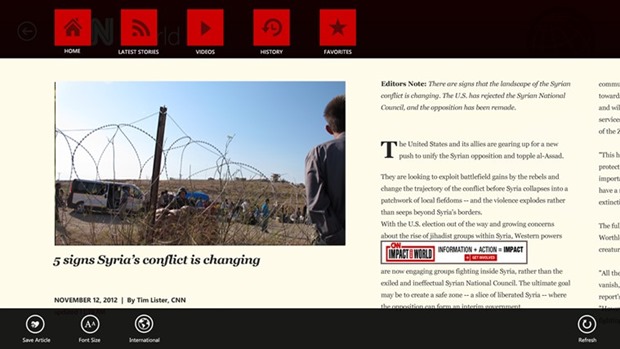 Read the top headlines on the go with the CNN Live Tile.