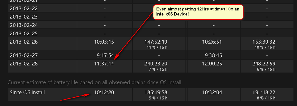 I loaded it with all my Play and Work software. My VPN clients and Lync MX clients worked flawlessly, no lag nothing! Loaded Office 2013 and a few work related clients, everything works! I mean everything! This is a complete opposite experience than what I was reading in reviews. How can there be so much difference in what Reviewers say and what the real life experience is? Something is wrong with this picture! I was prepared for a very slow experience, after all, this is a netbook class CPU. Nothing, no lag at all. The only lag I’ve seen on this thing is my Bluetooth mouse being jerky at times when device is heavily in use. And the most awesome of all, I am getting about 10hrs on this thing! See what Windows PowerCfg says for yourselves: