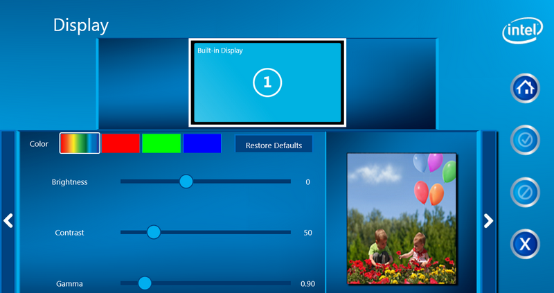 P.S: The Color correction no more available in the Display Wizard (Read-only now), adjustments is now ONLY available in Intel’s Graphic Media Accelerator Display client: