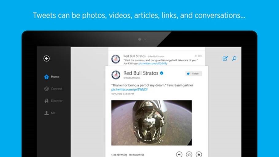 Twitter for Windows 8 brings you all the design, features and functionality of Twitter combined with the fast and fluid technology of Windows 8: