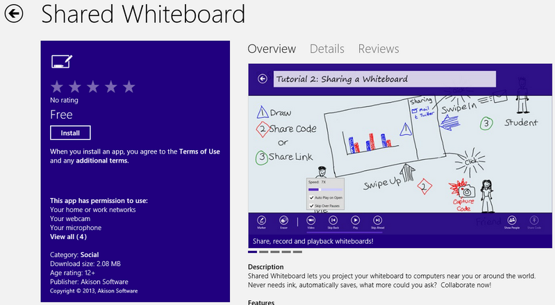 Hey what have we here?! Here is a nice tool from the Store for sharing your thoughts and collaborate with friends any part of the World. It is a perfect tool for Students and Teams all around the world as you can share with up to 2000 computers. Here is the full feature of the app as described in the Store: