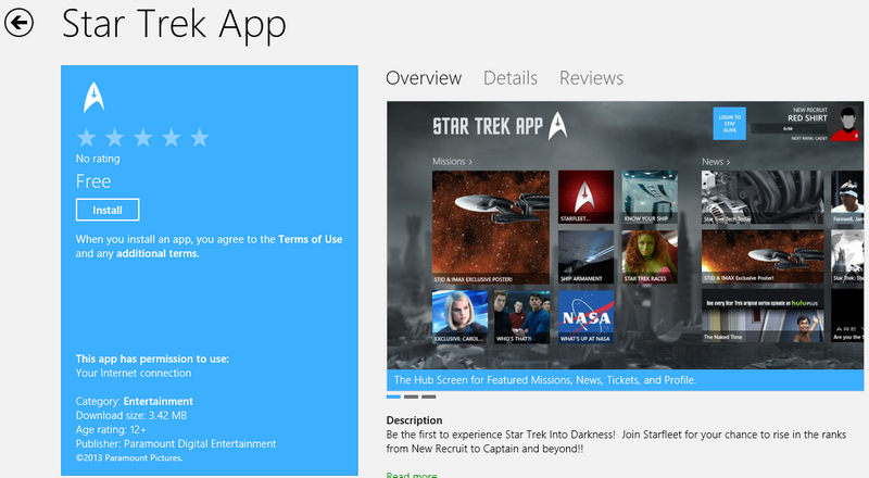 To commemorate its launch of its Star Trek: Into Darkness movie, Paramount has just released there first Official Windows 8 App for Star Trek Universe in the Store. With the App, you will be first to dive into scenes and news about Into Darkness in particular, and keep up to date about Star Trek universe in general. Are you are Trekkie on Windows 8, this App is meant for you. Of course this is the first iteration, there is more to come in future updates we hope. For now, you can enlist into Star Trek Academy and rise in ranks to be a full fledge captain. You carry out missions and achieve you objectives. When you’re done with role-playing you can dive into the universe and get the latest news and view your favorite characters’ profiles. The trekkie in us only wish Paramount will develop this further into a full-fledge game where we can get lost and burn time like there is no tomorrow. Make it so Paramount!