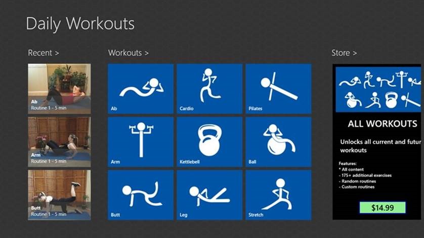 Sometimes as a Windows Store Tracker, you get the feeling that the best Apps have already been taken, that all apps being submitted lately are just wanna-bees. Hobbyists dipping their toes into Windows Store waters. But then along comes an awesome app to surprise you. That is the case for this app published just two days ago. Daily Workouts is exactly what it said it is, an app to assist you in achieving your personal health goals and looking gorgeous while doing it.