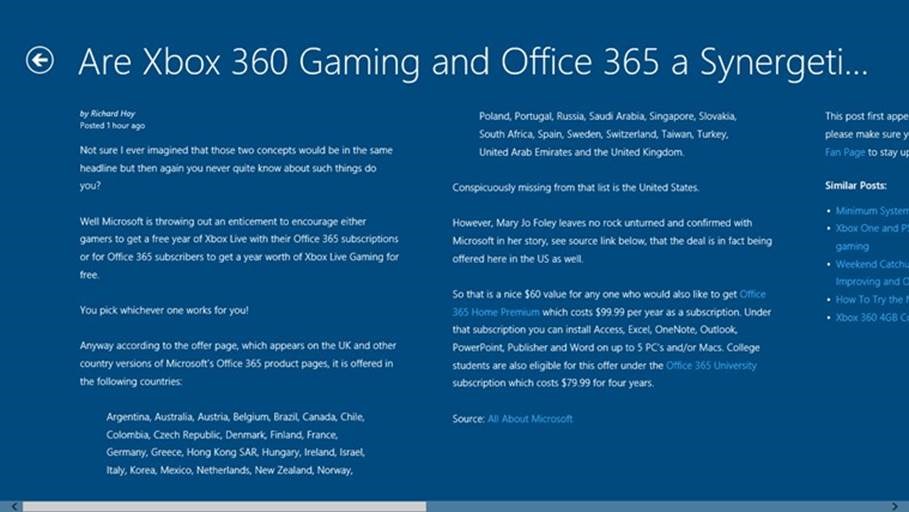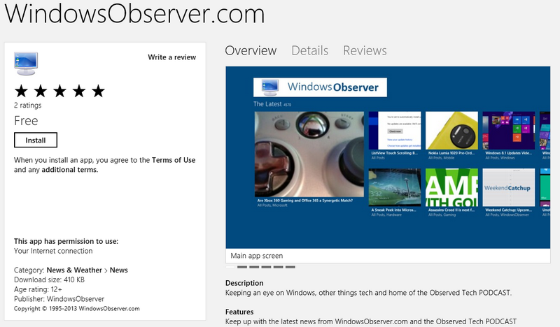 Our buddy site WindowsObserver.com released their first Metro App into the Store a while back, I have been wanting to give a shout-out but couldn’t find the time. The App is a companion app to the main site, bringing you up-to-date stories of all things Tech in general and all things Microsoft in particular. If you’ve been following Richard’s quality high volume tweets on @WinObs, you would know he is a One-Stop-Shop for all the news you’ll ever need stay on top Technology happenings. So we welcome this App in the Windows Store. If you don’t believe us, believe these few Reviewers from the store: