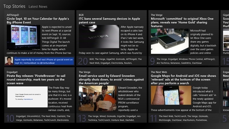 - • Live tile always shows you the most popular stories from each of your chosen categories