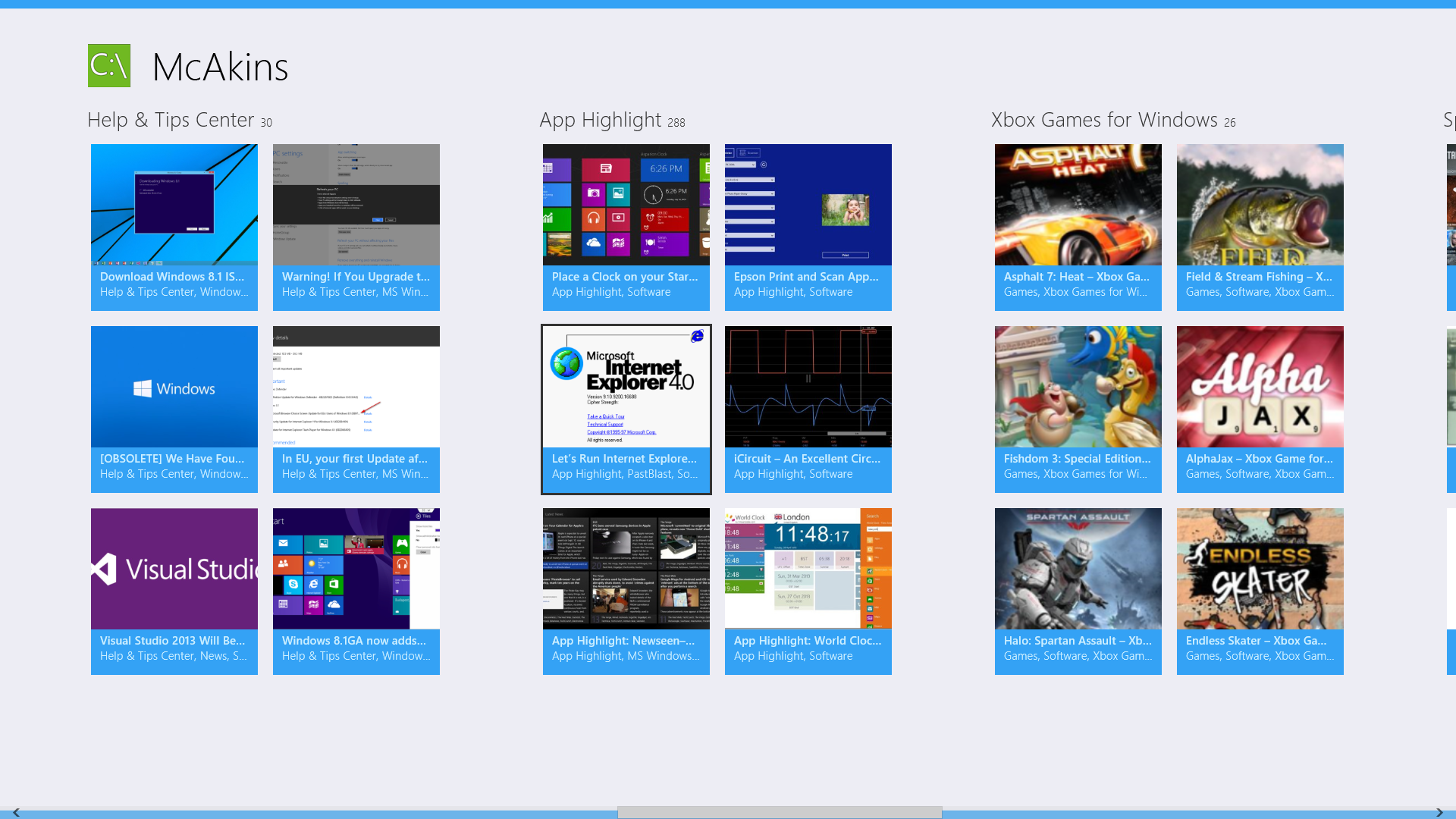 Hi folks! It’s Nazmus here, reporting to you that we have updated the official McAkins Online app. The update (now at version 1.1.0.3) is in certification with Microsoft and should be rolling out to you in the next few days. If you are running Windows 8.1, you will get the latest version automatically. If you are on Windows 8 or have turned off automatic app updates in Windows 8.1, you will need to manually update this app from the Store.